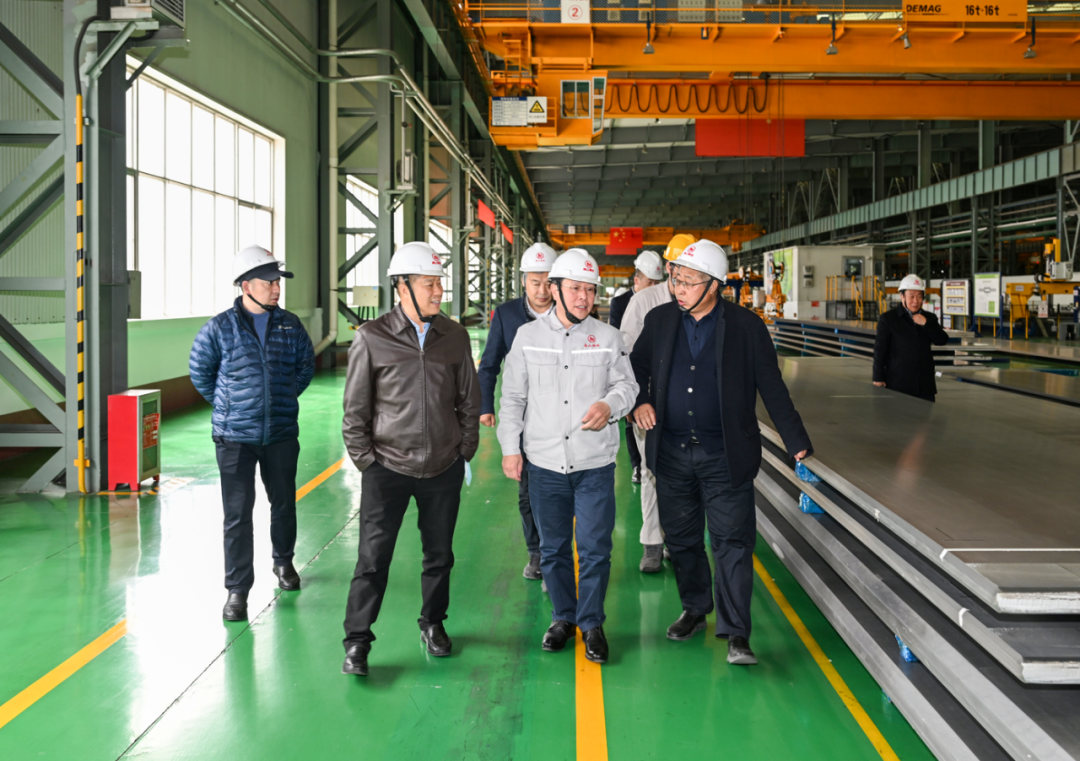 范順科一行實地參觀了板帶事業部板材廠、鋁材150MN擠壓車間以及航材園展廳等地,對南山鋁業的產品結構、應用領域等方面都有了進一步的了解。