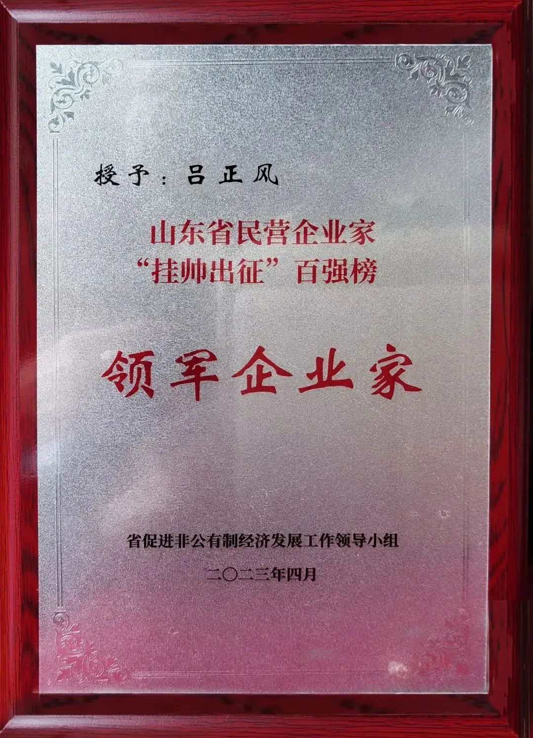 南山鋁業董事長兼總經理呂正風被授予山東省民營企業家 “掛帥出征”百強榜領軍企業家