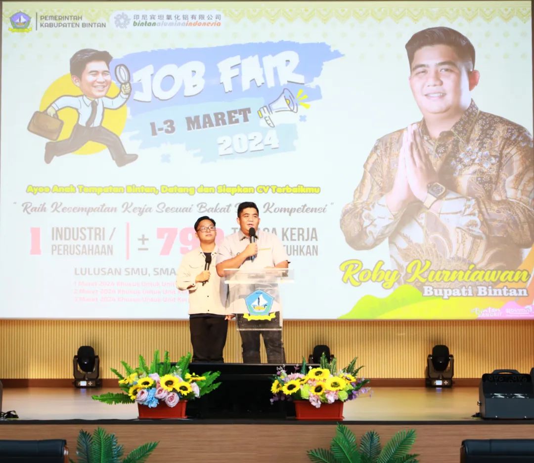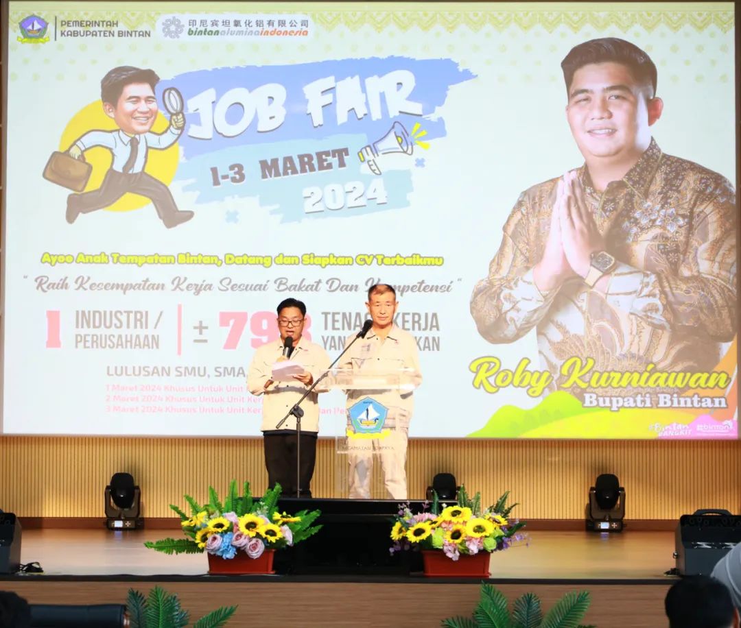 3月1日,廖內群島省賓坦島縣政府攜手印尼賓坦氧化鋁有限公司(PT.BAI)在印尼賓坦南山工業園商業區禮堂舉辦2024年大型招聘會,此次招聘會為期三天。印尼賓坦縣縣長Roby kurniawan(羅比)、印尼賓坦氧化鋁公司項目總監賈振江、綜合總監姜永強出席此次活動。