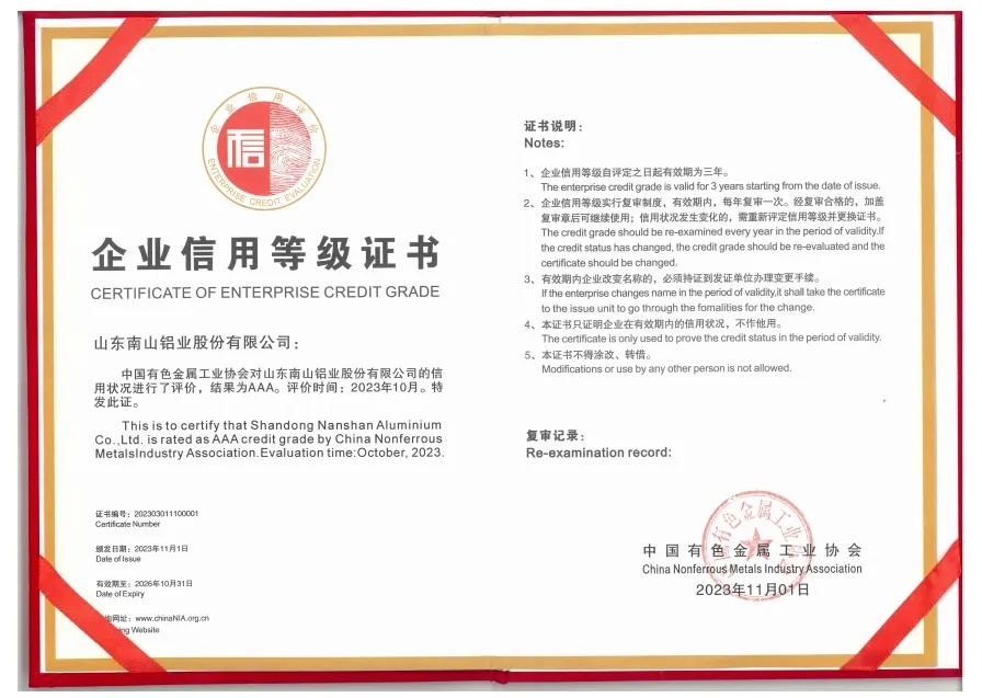 會(huì)上,南山鋁業(yè)被授發(fā)AAA級(jí)企業(yè)等級(jí)信用證書及等級(jí)評(píng)價(jià)牌匾,這不僅是對(duì)公司多年來誠信經(jīng)營、穩(wěn)健發(fā)展的認(rèn)可,更是對(duì)公司未來發(fā)展的期許和鞭策。