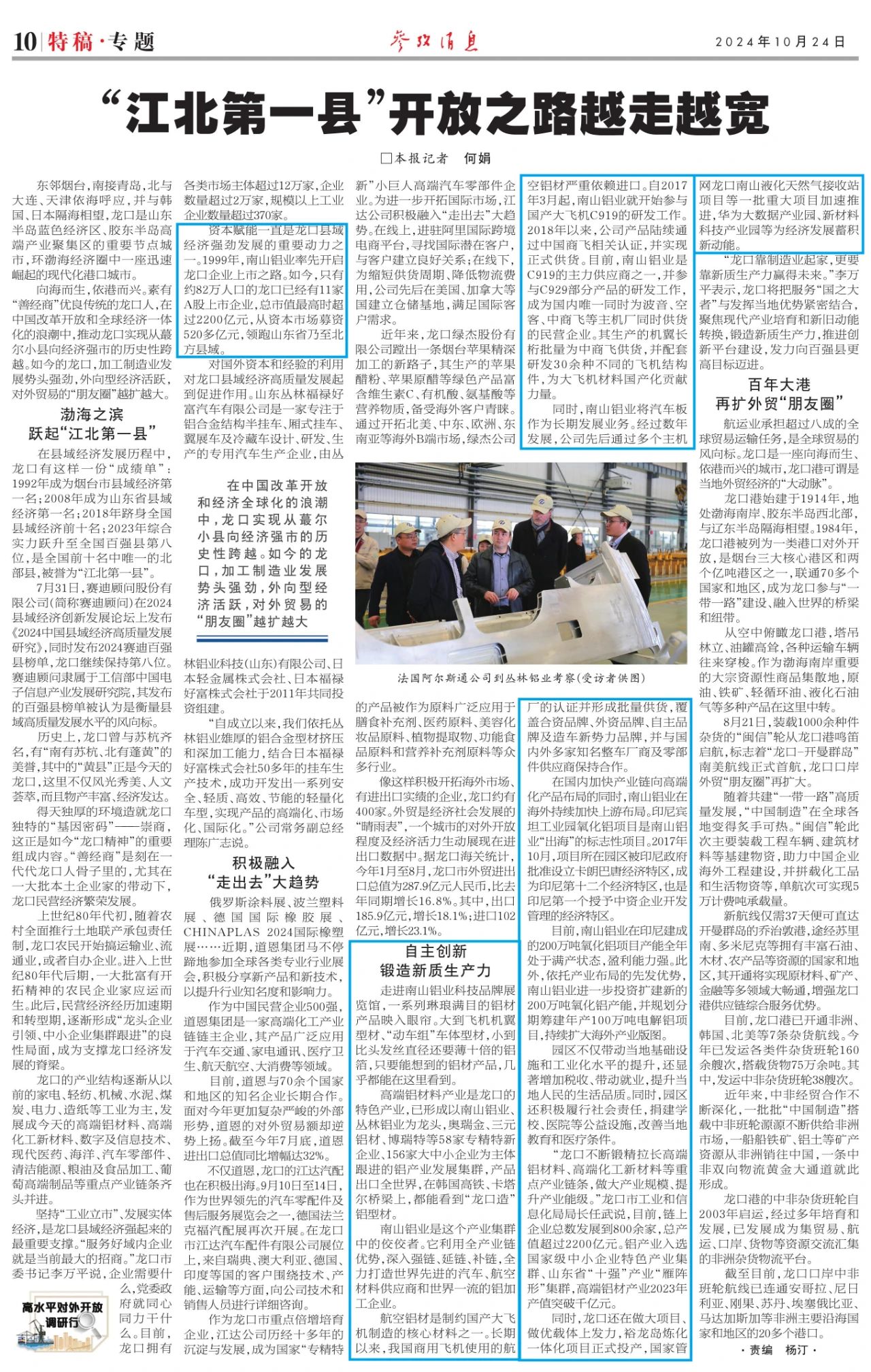 10月24日出版的《參考消息》,聚焦“江北第一縣”——龍口,點贊南山鋁業率先利用資本賦能開啟龍口企業上市之路,并深度挖掘南山鋁業以自主創新鍛造新質生產力的故事。