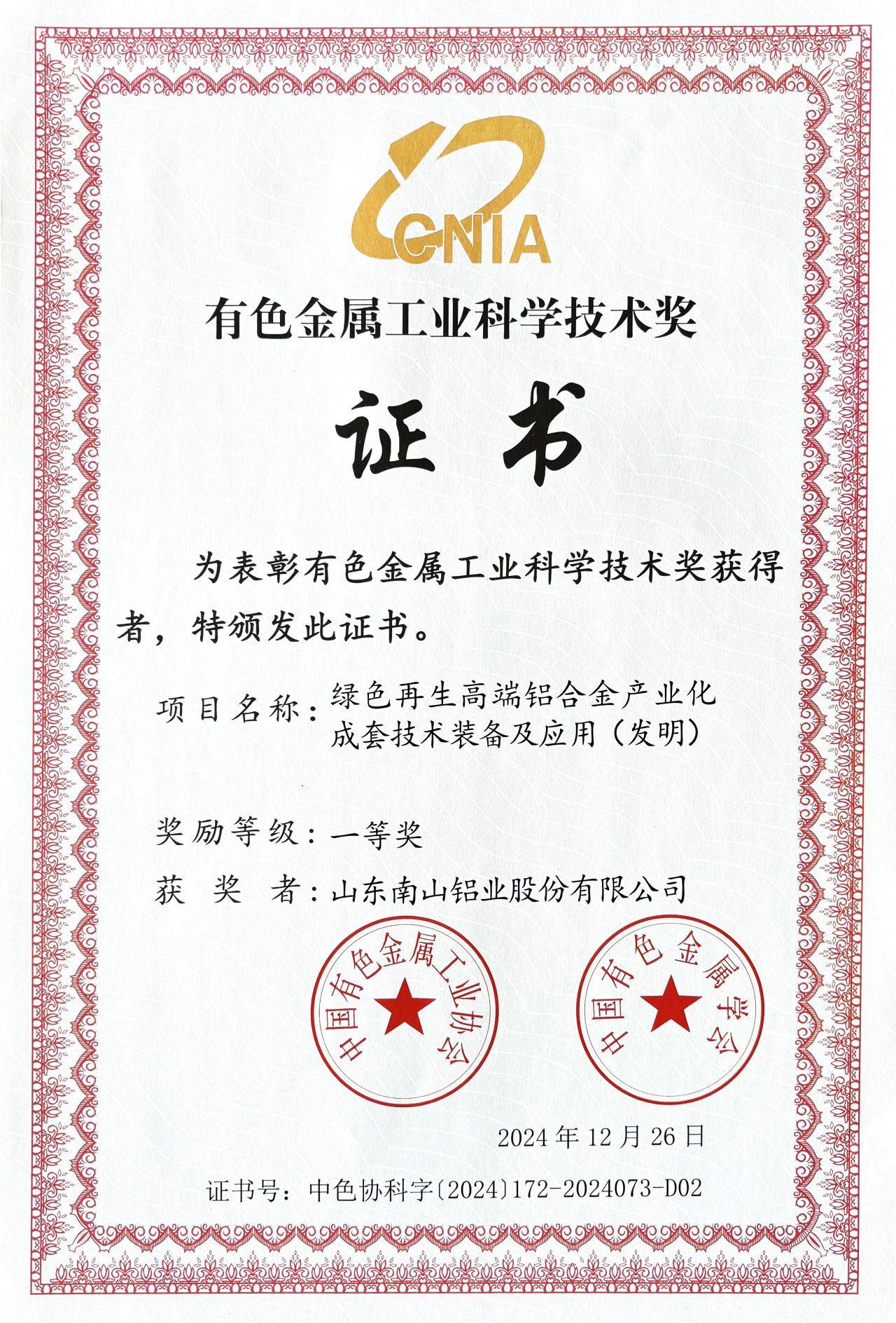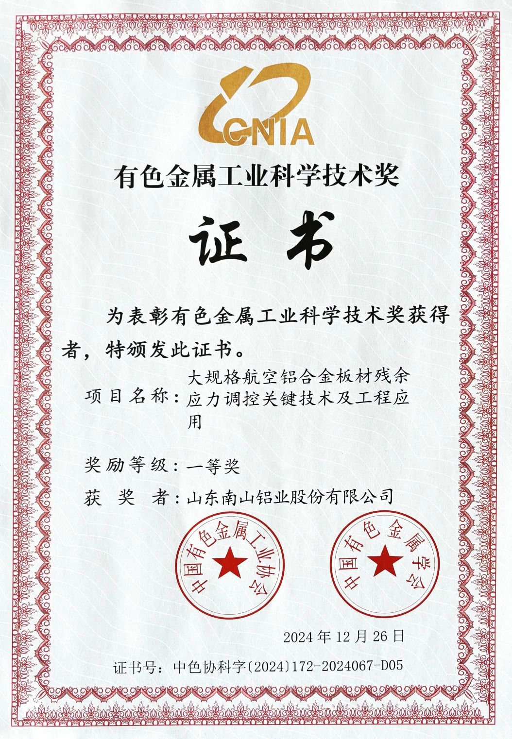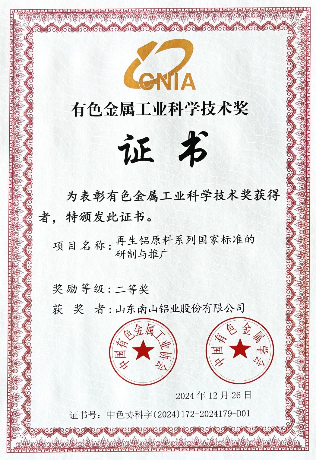 近日,中國有色金屬工業協會、中國有色金屬學會頒發了2024年度中國有色金屬工業科學技術獎獲獎證書。南山鋁業(股票代碼:600219)憑借其在航空鋁合金板材、綠色再生高端鋁合金以及再生鋁原料系列國家標準研制與推廣方面的卓越成就,一舉奪得多個獎項,再次彰顯了其在有色金屬行業的領先地位和技術創新能力。