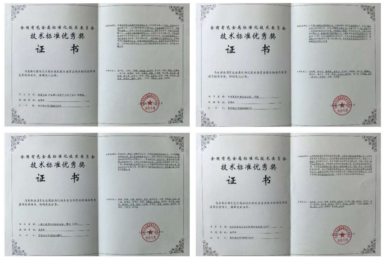 南山鋁業主起草行業標準《車身覆蓋件用鋁合金板、帶材》被全國有色金屬標準化技術委員會授予“技術標準優秀獎”一等獎,參與起草國家和行業標準《溫室氣體產品碳足跡量化方法與要求電解鋁》《一般工業用鋁及鋁合金板、帶材》《鋁及鋁合金晶粒細化用合金線材》分別獲得“技術標準優秀獎”二、三等獎。