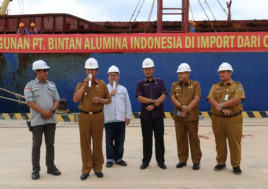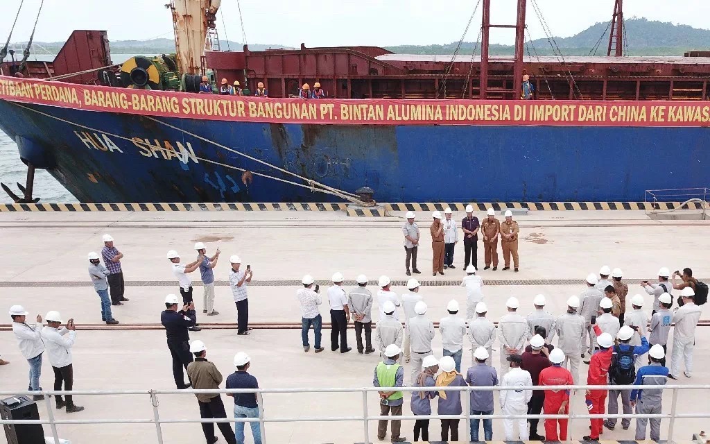 7月16日上午,印尼賓坦氧化鋁有限公司港口首次靠泊儀式在港口碼頭舉行,廖內(nèi)群島省長伊思迪安多(Isdianto),廖內(nèi)群島經(jīng)濟(jì)發(fā)展局局長薩姆蘇(Syamsul Bahrum),民丹縣勞工局處長英德拉(Indra Hidayat),卡朗巴塘經(jīng)濟(jì)特區(qū)行政長官海思凡(Hazfarizal),印尼項(xiàng)目總經(jīng)理郝維松,董事張國燈,合作單位及港口相關(guān)負(fù)責(zé)人參加靠泊儀式。