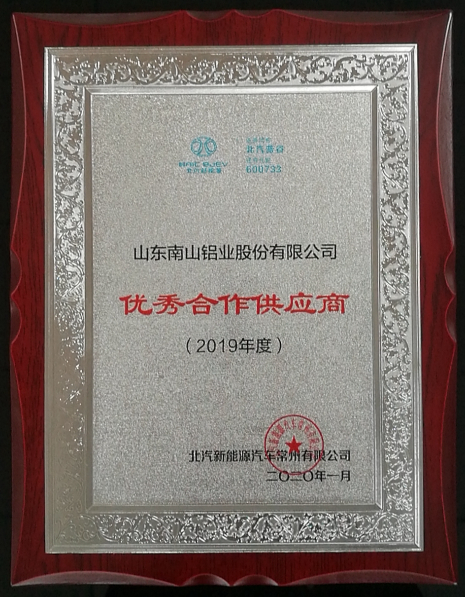 近日,從北汽新能源公司年度供應商大會上傳來一大喜訊,南山鋁材榮獲北汽新能源公司2019年度“優秀供應商”稱號。此殊榮的獲得標志著該公司以精良的產品、優質的服務、卓越的品質,在提升客戶滿意度這一公司終極理念上再上新臺階。