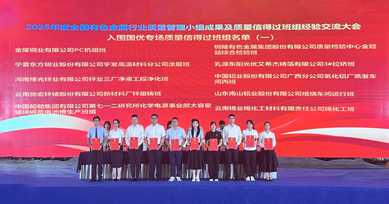近日,中國有色金屬工業協會組織召開2025年度全國有色金屬行業質量管理小組暨質量信得過班組經驗交流大會。龍口東海氧化鋁有限公司焙燒車間運行班憑借《守工匠之心創一流品牌》的主題成果,榮獲“全國優秀質量信得過班組”特級班組。