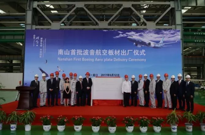 3月8日,南山鋁業與中國商飛上飛院“民機鋁合金材料聯合研究中心”揭牌儀式在南山航空材料產業園鋁業展覽館隆重舉行。此次揭牌儀式由南山集團技術中心主任潘峰主持,龍口市市委書記韓世軍,中國商飛上飛院院長沈波,南山鋁業董事長程仁策等領導出席并講話。