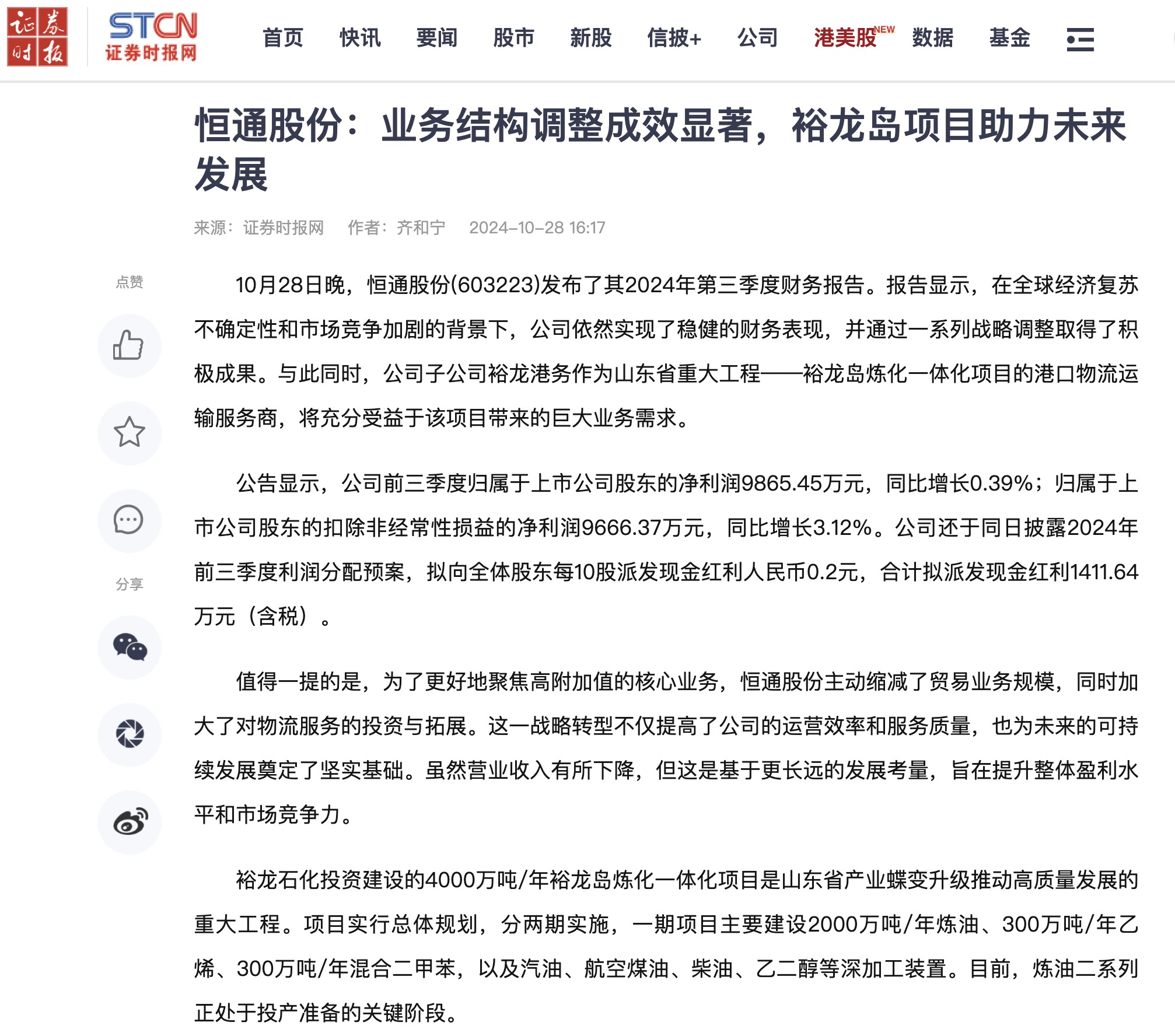 證券時報:南山鋁業前三季度凈利潤34.9億元 同比增長62.94%